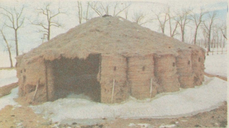 The barn is 44 ft. across, with 12-ft. high walls. A woven wire inside liner is tied through the bales to outside wire bands.