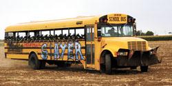 “We have 40 stationary targets to shoot at during the day as the buses travel through the field,” says Fritzler. “We add 20 employees dressed in zombie costumes or escaped prisoner costumes to after dark trips. They dart in and out of the cornfield as the buses go by. Most of the paintballs get fired at them.”