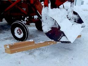 Pederson explains that he first moves snow with just the bucket, then adds the 4x4 with three 1/2-in. bolts.