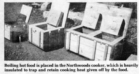 "The principle is simple," explains Bonnie Arnold, developer of the new Northwoods Cooker which requires "60 to 75% less energy to prepare foods than conventional cooking."