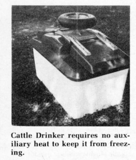 The Cattle Drinker is heavily insulated with fiberglass and urethane, similar to that used in boat construction. A water dam in the tank, combined with insulated lids, seals water in the tank from the outside air.