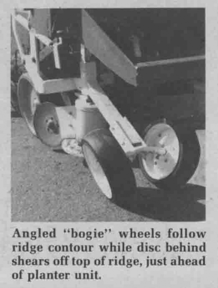 Another key feature is the bogie guidance wheels. Two angle-opposed wheels follow the old ridge, keeping the planter row unit centered and locked on the ridge.